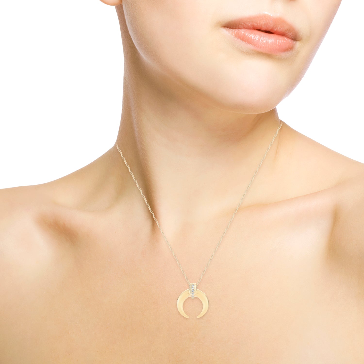 'Dallas' necklace containing a double horn pendant with a line of diamonds in the center of the fixed bale.